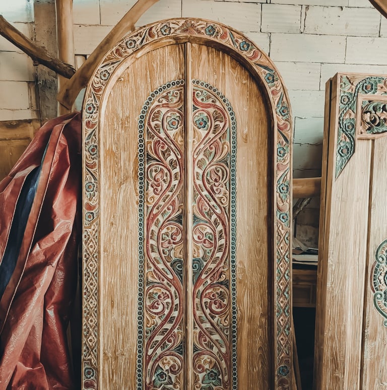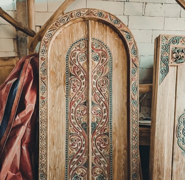 With detailed workmanship and carving techniques that have been passed down from generation to generation, this door not only functions as a practical element, but also as a work of art that radiates the warmth and beauty of traditional culture. Suitable for rustic, ethnic, or even modern style homes that want a natural and unique touch.