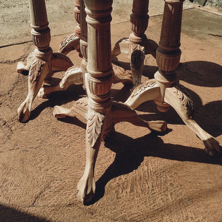 Classic carved design: The table legs are decorated with artistic carvings inspired by animal claws.