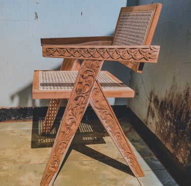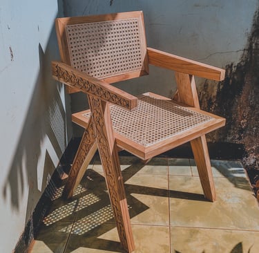 The Hajon Chair from our Rattan Series combines classic craftsmanship with modern elegance. Made from premium teak wood, this chair is durable, naturally resistant, and showcases the wood's rich, warm tones. Its woven rattan seat and backrest offer breathability and comfort, while the intricate floral and geometric carvings on the arms and legs add an artistic touch.