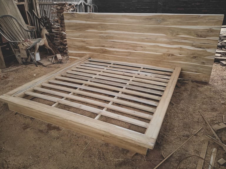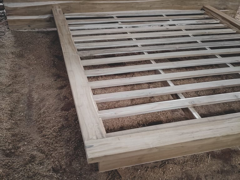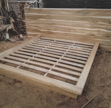 We received a special order from a client who wanted a king size bed made of solid teak wood with a modern design and a 295 cm long headboard. This project highlights the natural elegance of teak wood with its unique grain pattern, giving a luxurious touch and natural aesthetic to their master bedroom.