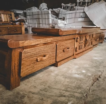High-quality teak wood furniture and handicrafts with unique and elegant designs.
