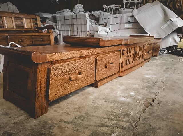 Fielic Wood Artisan proudly presents the Mindi Wood TV Table, which combines elegant design with user-friendly functionality.